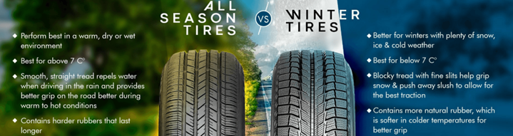 Tread design: Deeper grooves and biting edges to channel snow, slush, and water
