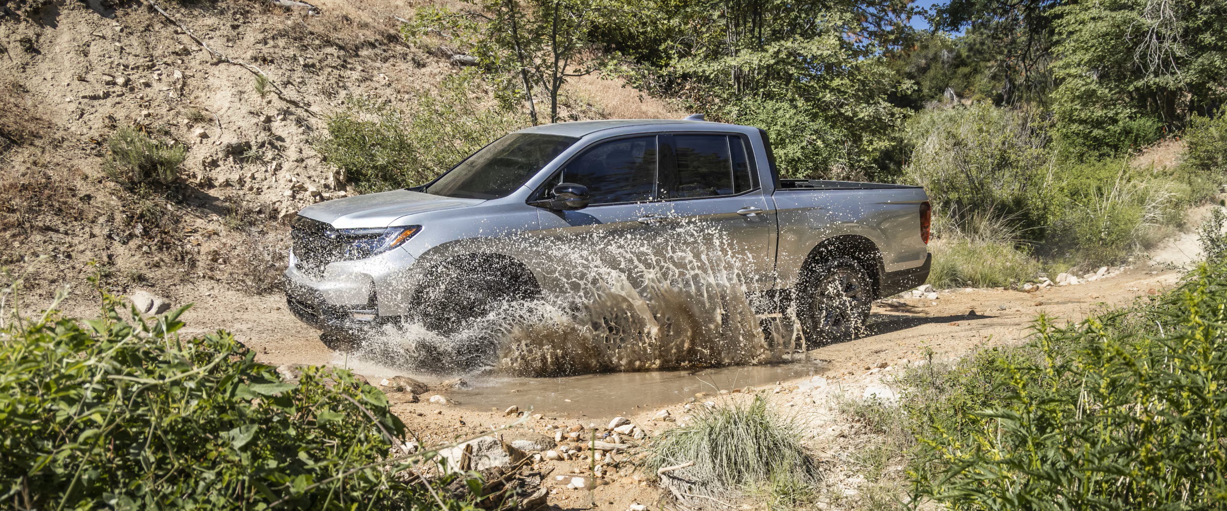 No matter the terrain, the Ridgeline is ready to help tackle it with fully independent front and rear suspensions and Intelligent Traction Management that lets you select between Normal, Snow, Sand, and Mud modes to help adapt to the driving conditions. Just push a button and go forth.